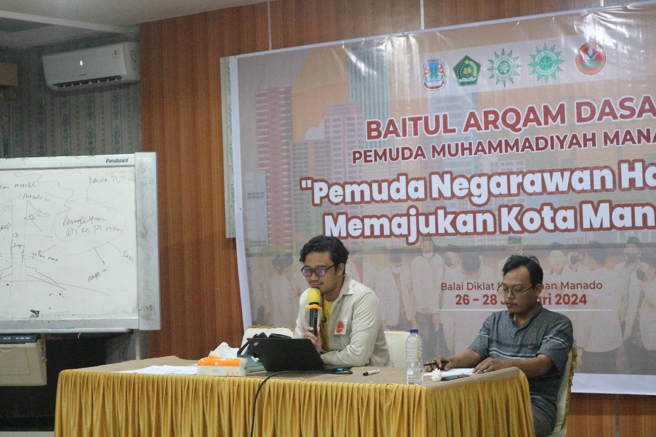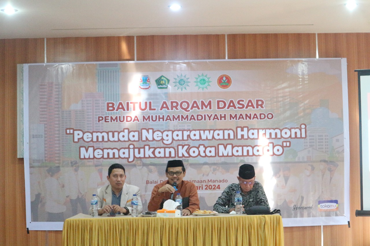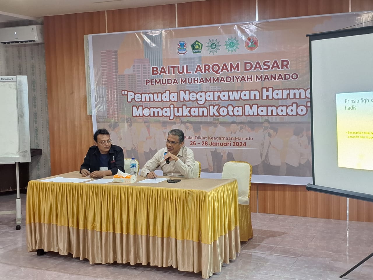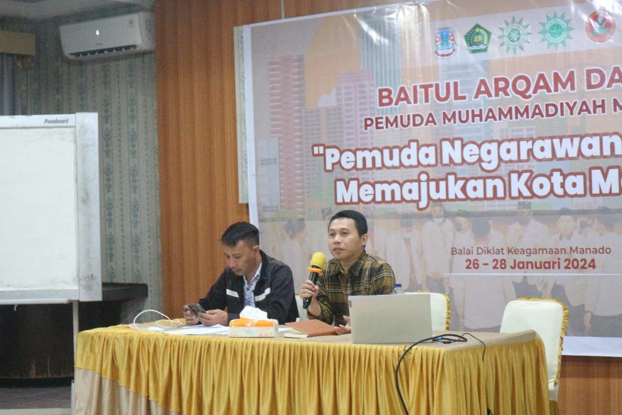 Muhammadiyah Manado, Ahad 28 Januari 2024. Pelaksanaan Baitul Arqom Dasar (BAD) Pimpinan Daerah Pemuda Muhammadiyah Manado dilaksanakan di Balai Diklat Keagamaan Kota Manado sejak dari Jumat 26-28 Januari 2024. Kegiatan ini menghadirkan dua Profesor Muhammadiyah di Sulawesi Utara yakni Prof Delmus Salim, M.A, M.Res, Ph.D dan Prof Dr. Nasruddin Yusuf, M.Ag, Rektor Universitas Muhammadiyah Manado (UNIMMAN) Agus Laya, M.Kes dan sejumlah Aktifis baik di Muhammadiyah dan umum. Kepesertaan sejumlah 24 yang terdiri dari Mahasiswa, Staf, bahkan hingga Dosen. Akhir kegiatan BAD sekaligus deklarasi pengaktifan PCPM se-Kota Manado dengan basis kadernya dari peserta Baitul Arqom Dasar. Kami juga berterima kasih pada Ketua PW Muhammadiyah Sulut ayahanda Masrur Drs yang sudah memberikan Keynote Speaker pada pembukaan BAD dan Ketua PDM Manado Ayahanda Rajab Djamali, M.Si yg sudah ikut membuka acara BAD.